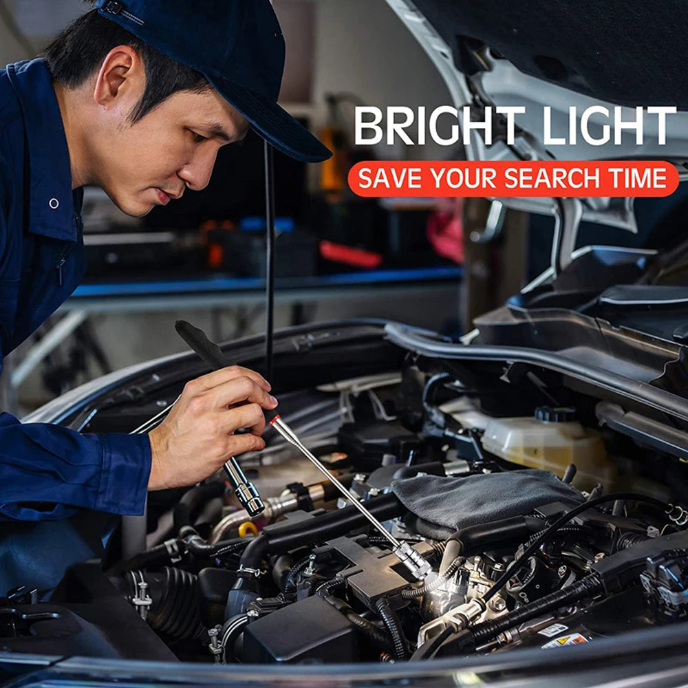 Plockverktyget är mycket lämpligt för smala och mörka platser, vilket kan hjälpa dig att lysa upp en bredare vy för att plocka upp små föremål; Och den flexibla teleskopen kan förlängas till 79 cm för att manövrera runt svåråtkomliga platser; Dessutom kan du enkelt ställa denna teleskopiska magnetstav på ett metallföremål och teleskopera halsen för att utföra alla möjliga tråkiga uppgifter som krävs.